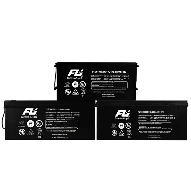 La serie de baterías Fulibattery Gel, contiene electrolito de gel distribuido homogéneamente en un ácido sulfúrico. Las válvulas de ventilación de diseño especial también se utilizan para controlar la tasa de gasificación y pérdida de agua, que no requieren mantenimiento.