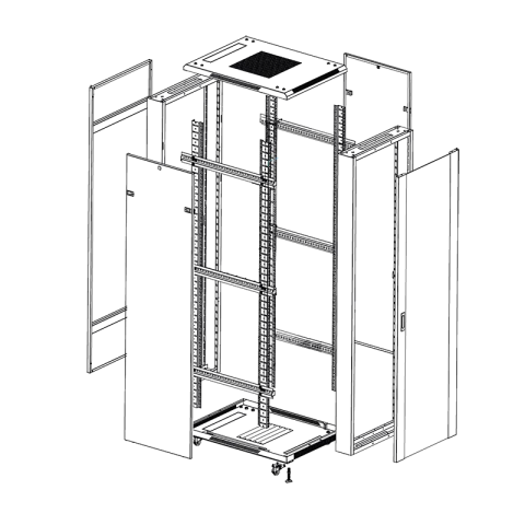 Amplio espacio para la organización de cables • Fácil transporte, ahorro en fletes • Fácil identificación de unidades de Rack para un óptimo montaje • Acceso de cableado parte superior e inferior